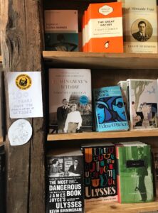 Kate and I walked along, looking at the repairs to Notre Dame and feeling humbled to see the great monument in such distress. Then, finally, we crossed the street and came upon crowds lining up to be admitted to Shakespeare and Company. Naturally, we stood in line with the others. When we reached the sales desk, I asked if they had Hemingway’s Widow in stock. A young British woman with long curly blonde hair asked: “Oh, are you by any chance the author?” I said I was, and she came out from behind the cash desk and said she was delighted to meet me. She directed me to the prominent shelf where Hemingway’s Widow sat comfortably under Fitzgerald’s The Great Gatsby and Hemingway’s A Moveable Feast, next to Edna O’Brien’s A Portrait of a Marriage, and above Joyce’s Ulysses and The Dubliners. I was stunned and thrilled to see Hemingway’s Widow placed in such great company.