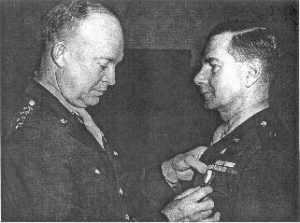 In this photo General Eisenhower pins a decoration on the chest of General McClure.